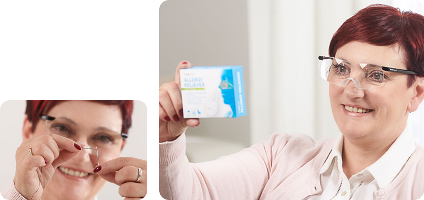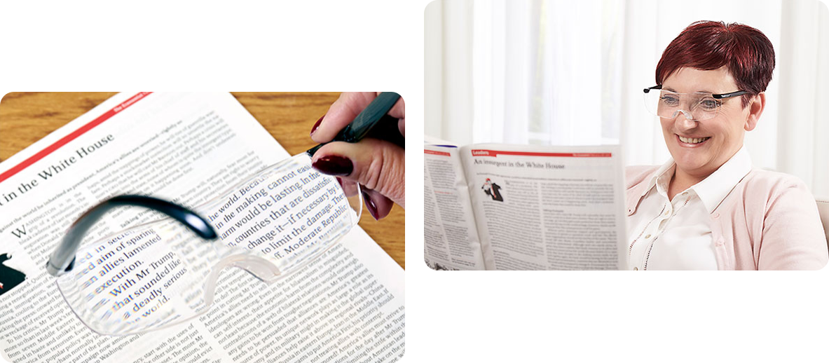 Memegang kaca pembesar di satu tangan dan mencoba melakukan sesuatu dengan tangan lainnya? Lupakan saja! Dengan Visi Pro, Anda akan memiliki kedua tangan yang bebas. Kacamata yang fleksibel dan ringan ini dapat dikenakan di atas kacamata korektif, lensa kontak atau kacamata hitam yang sudah Anda kenakan. Anda bahkan tidak memerlukan gelar untuk menggunakannya.